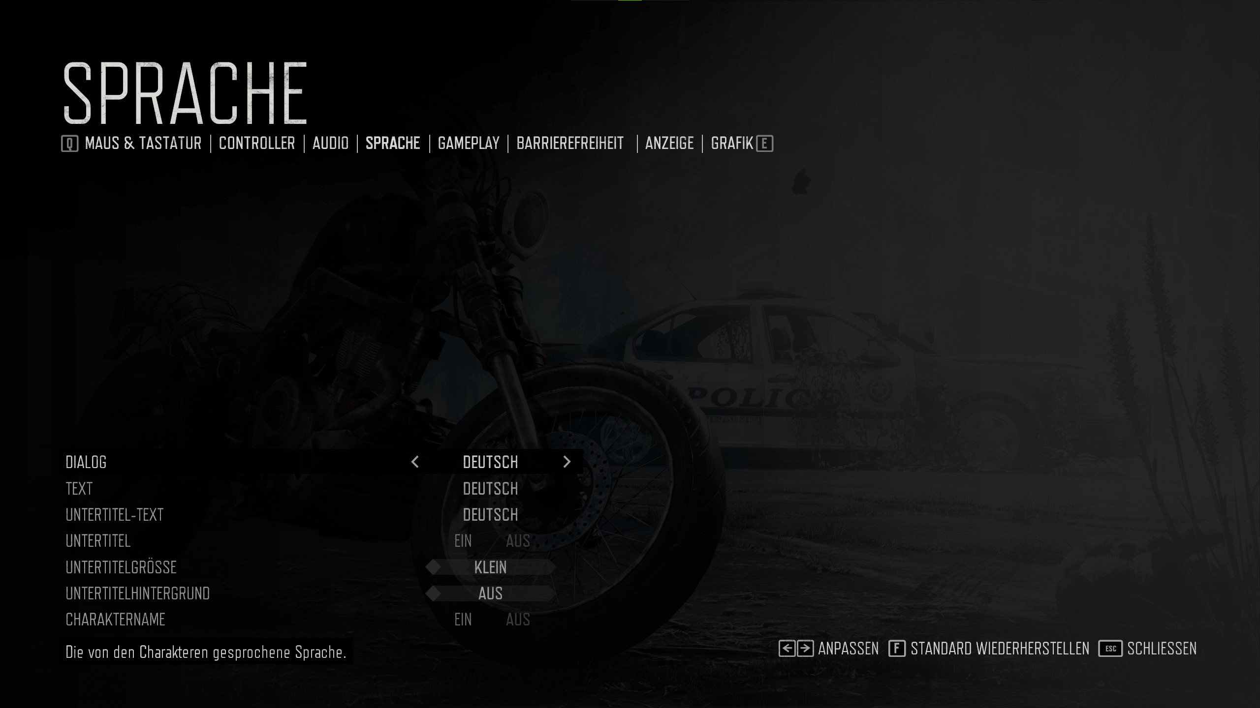 Die Barrierefreiheit-Einstellungen von Days Gone