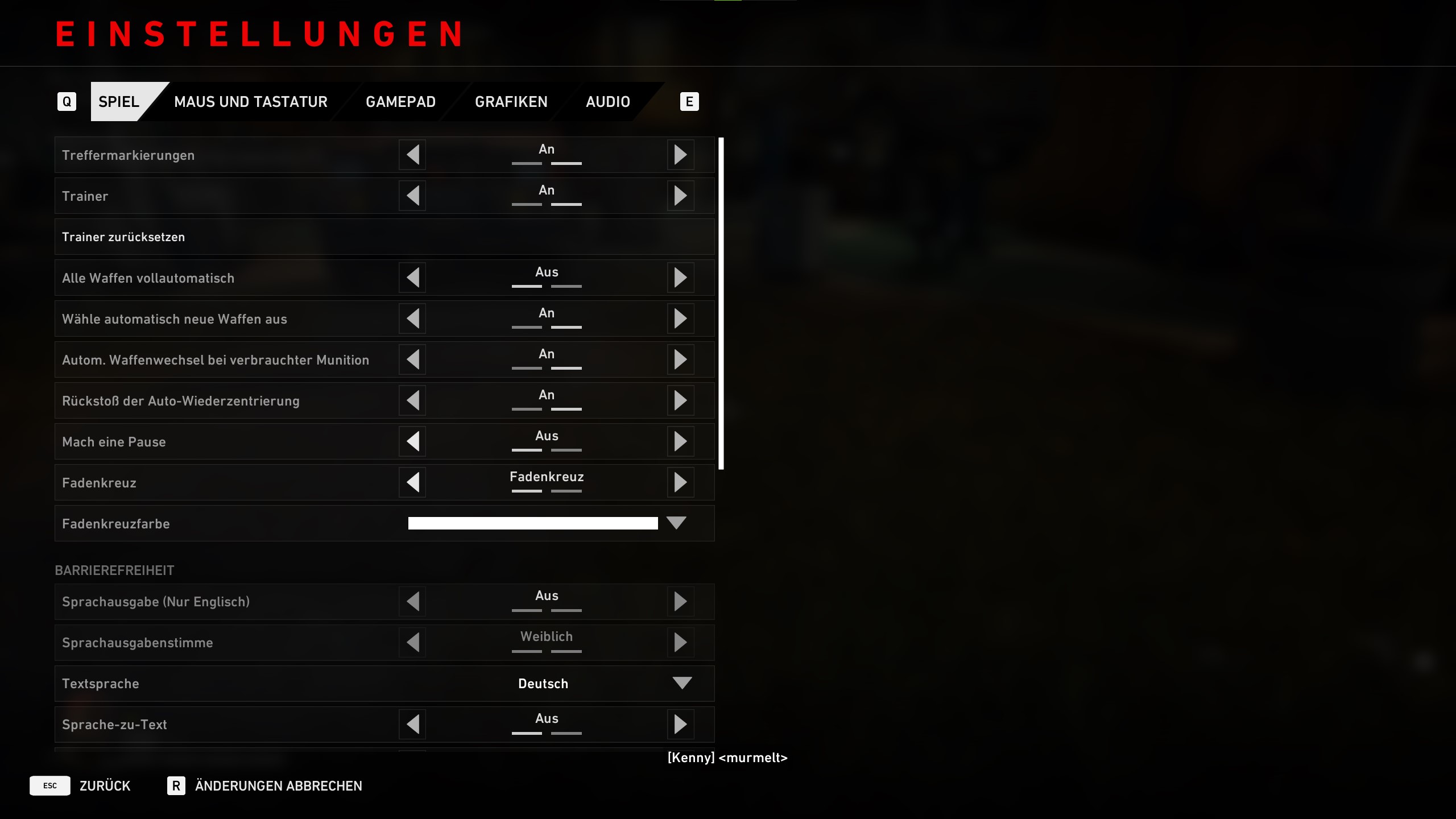 Weiter unten könnt ihr die Optionen: Zum Sprinten gedrückt halten, Gedrückt halten für Zielen durch das Visier und Inventarrad enthält auch Accessoires an- oder ausschalten.