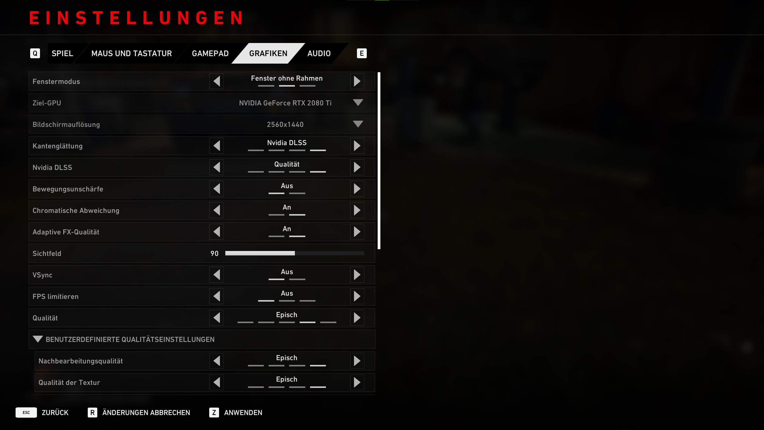 In den Grafik-Einstellungen könnt ihr den Fenstermodus anpassen, die Bewegungsunschärfe an- oder ausschalten und das Sichtfeld anpassen.