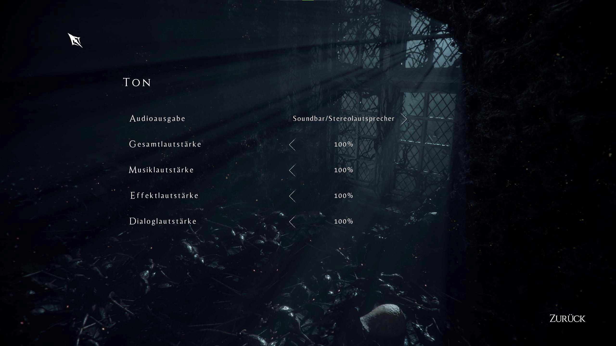 In den Ton-Einstellungen könnt ihr die Audioausgabe, Gesamtlautstärke, die Lautstärke von Musik, Soundeffekte und Dialoge anpassen.