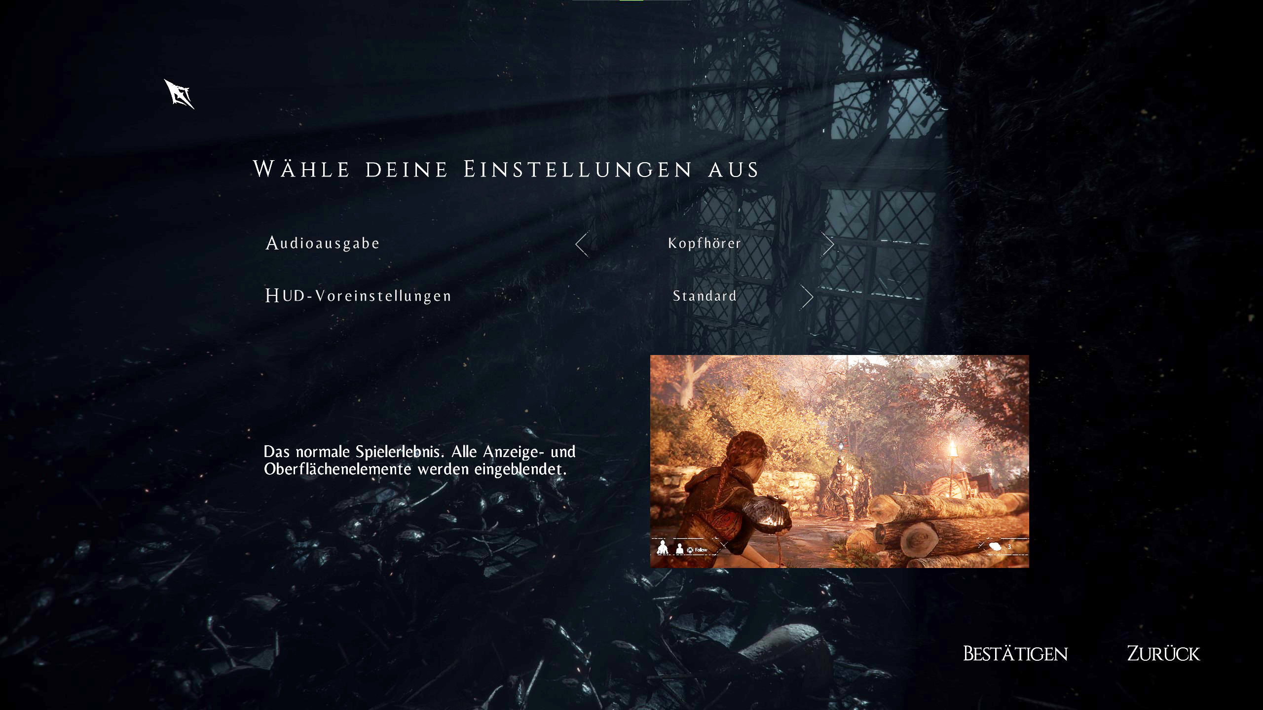 Beim Start der Kampagne könnt ihr die Audioausgabe anpassen und HUD-Voreinstellungen wählen.
