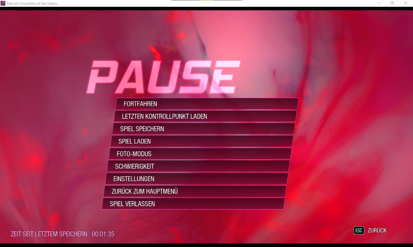 Im Pause Menü könnt ihr das Spiel fortsetzen, den letzten Kontrollpunkt laden, das Spiel speichern, einen Spielstand laden, den Foto-Modus starten, die Schwierigkeit anpassen, die Einstellungen öffnen, zurück zum Hauptmenü gelangen und das Spiel beenden.