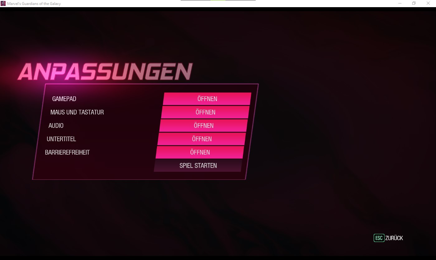 Die Barrierefreiheit-Einstellungen von Marvels Guardians of the Galaxy