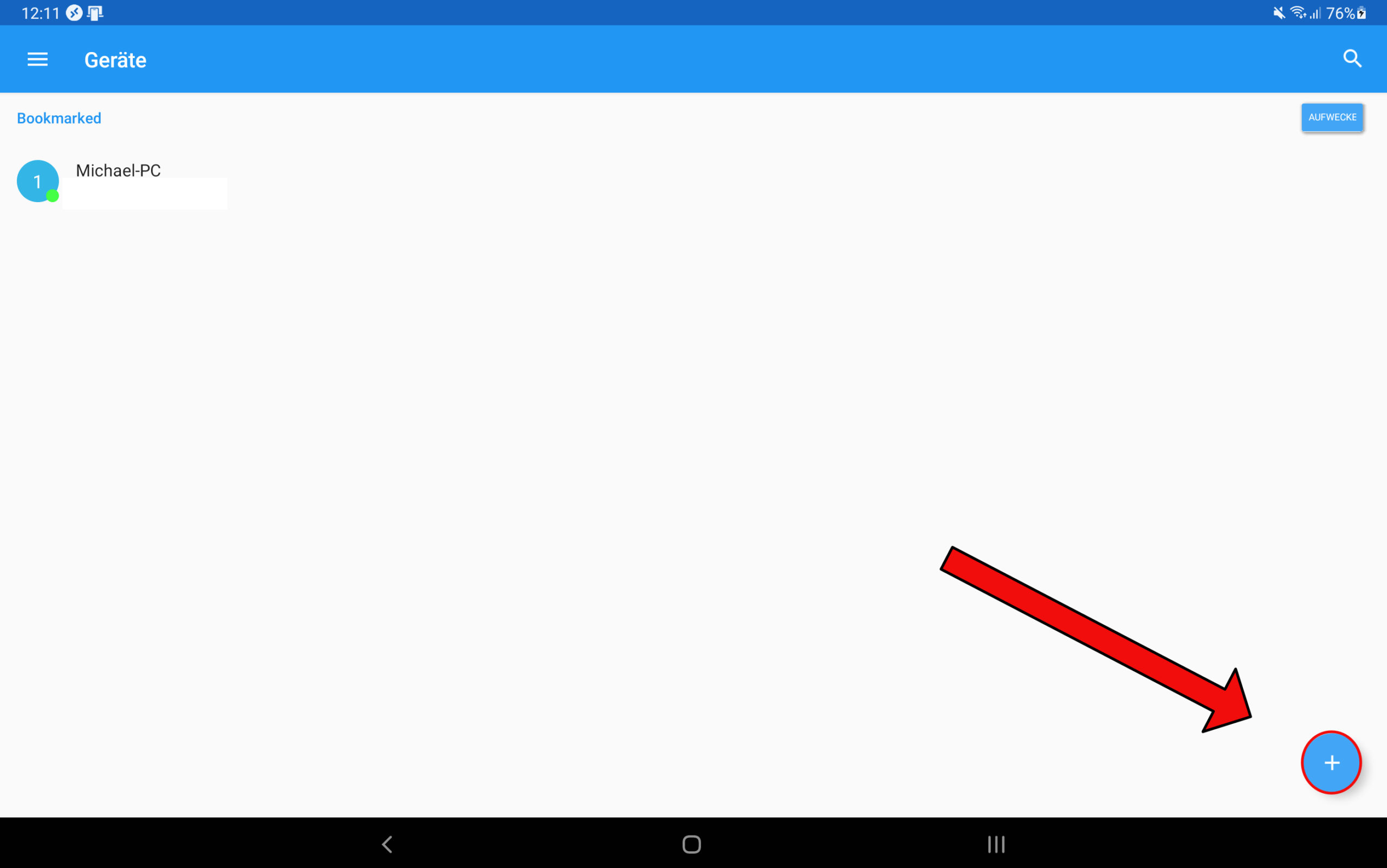 Starten wir mal die Wake On Lan Android App. Um den PC hinzufügen, klickt man unten rechts auf das blaue Plus.