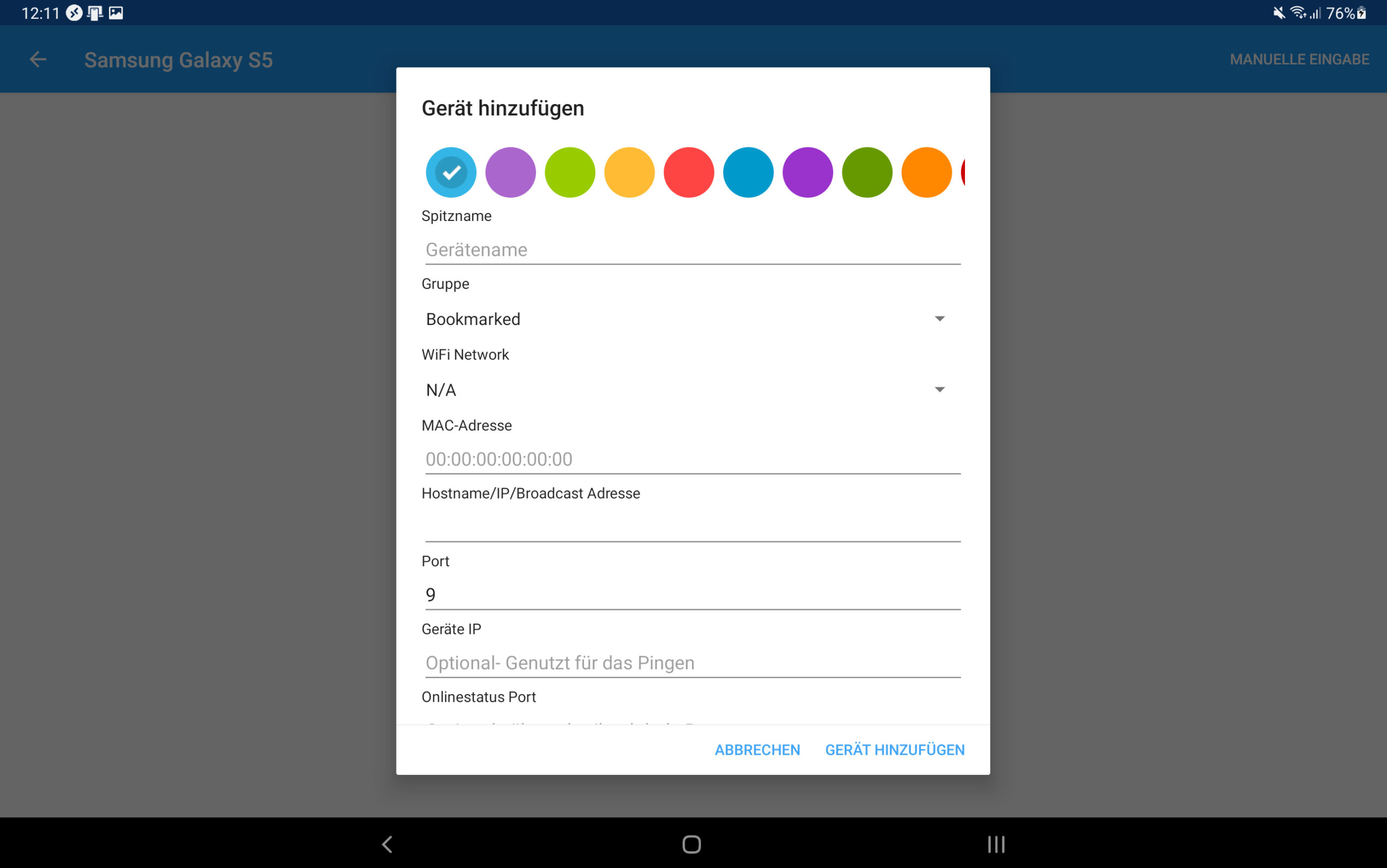 Wir empfehlen bei Spitzname den Hostnamen einzugeben, um eine bessere Übersicht zu haben. Bei der MAC-Adresse wird die Physische-Adresse eingetragen und bei Hostname/iP/Broadcast Adresse die iPv4-Adresse. Zum Schluss einfach auf "Gerät hinzufügen" drücken.
