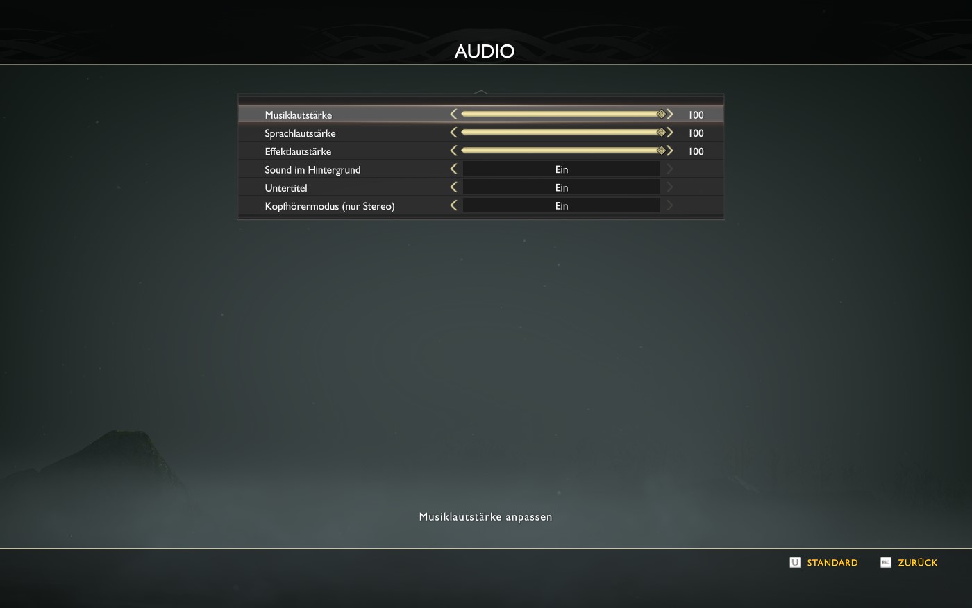 In den Audio-Einstellungen könnt ihr die Lautstärke von Musik, Sprache und Effekte anpassen.
